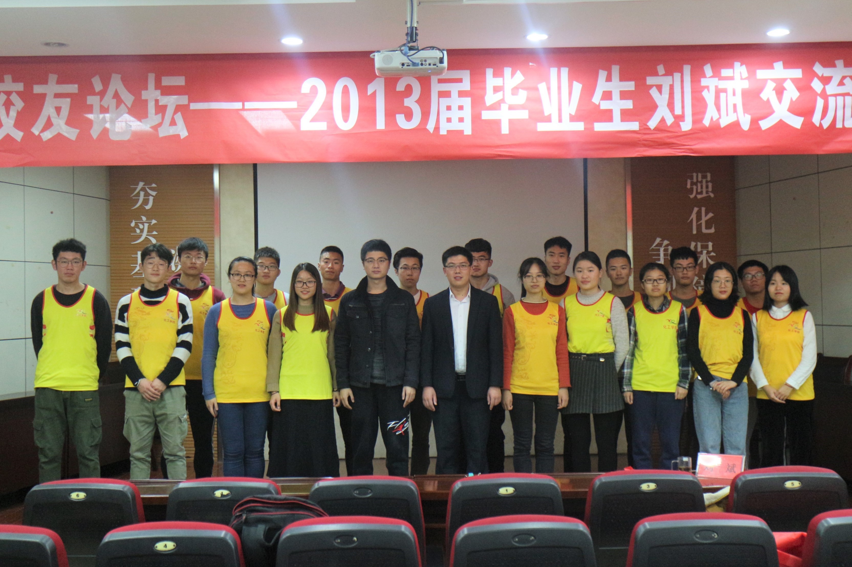 座谈会上,刘斌首先回忆了他在科大度过四年时光。他满怀深情说道:“母校就是无论你何时离开,何时回来,都亲切如初、倍觉温暖的地方。”讲述过程中,他多次谈到田径队中的美好时光,他真诚告白在场田径队团员同学:付出汗水才会收获成功,坚持训练即是长胜法宝,团结共进成就田径传奇。作为连续四年参加校运动会的老教练,刘斌说,他虽已毕业六年,但依然每天关注母校动态,每年越野赛、运动会时节甘当“小黄衫铁粉”,每次听到“化工化工,谁与争锋”的口号都心潮澎湃。接着,刘斌和大家分享了毕业后扎根基层、无私奉献的工作经历。期间,他多次感谢老师们给予的鼓励和帮助。他强调,作为员工,在学习上应珍惜大学学习时光,时刻不能松懈,用学业成绩证明自己;作为党员员工干部,在工作上,应时刻不忘为同学服务的初心,牢记做同学公仆的使命,兢兢业业,尽心尽责。最后,针对同学们提出的有关心态调整、压力缓解、学习工作之间的平衡方面的问题,他都一一细心解答。他热情真诚、诙谐幽默的的回答引得同学们笑声阵阵,掌声不断。