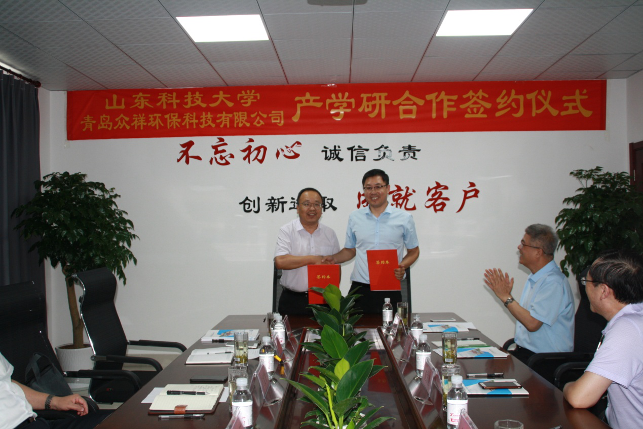 7月10日,化学与环境工程学院与青岛众祥环保科技有限公司签订依托海泡石为基础的新型环保材料及产品研发协议。青岛众祥环保科技有限公司董事长付强与化学与环境工程学院王力教授代表双方在合作协议上签字。化学与环境工程学院吕宪俊经理与付强董事长为永利集团304am官方入口环境新材料联合实验室和实践教学基地揭牌。