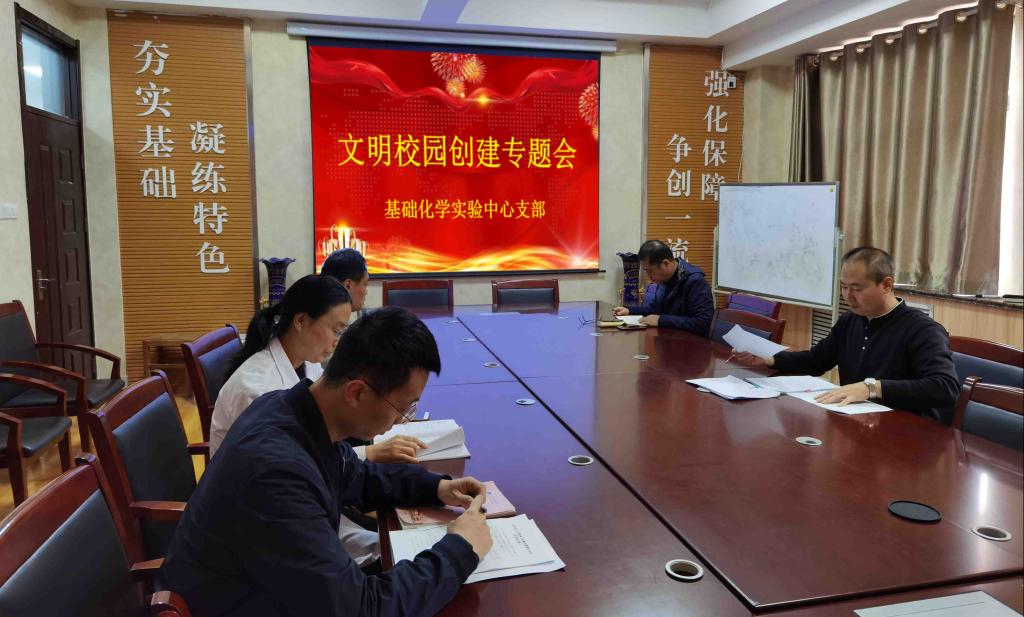 为积极践行社会主义核心价值观,广泛开展文明校园创建活动,进一步提高文明素养,提升文明层次,基础化学实验中心召开全体教职工创建文明校园专题动员会。