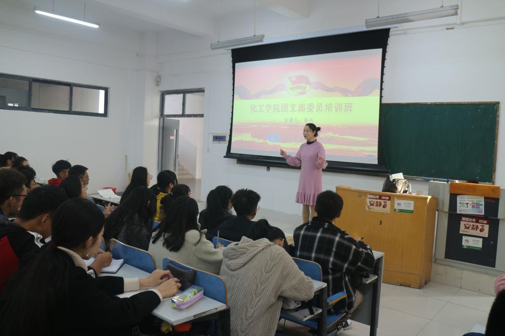 简短的开班仪式之后,易凡老师首先开讲,她说,支部委员要有坚定的政治立场和牢固的责任意识,正确把握工作方向,认真落实工作任务,凡事尽职尽责尽心,才能将工作做实做细做好。许婷婷老师以“服务他人,成就自己”为题,分享了自己在大学阶段担任团支书的经历,并就遇到的问题以及工作的收获,鼓励大家树立服务意识,发扬奉献精神。诸葛长华老师向同学们深入论述了“勤、谨、和、缓”四个字的意义,引导大家养成良好的工作习惯,不断创新工作方法,做好个人生涯规划。李玲玲老师着重讲述了老员工团员心理问题的现状,并介绍了一些应对方法,对保持团员同学心理健康起到了积极作用。最后,全体团支部委员重温入团誓词,进行宣誓,以提醒大家不忘团员的初心,坚定共产主义信仰,牢记共青团员作为党的后备军这一光荣身份,承担自己应有的责任。